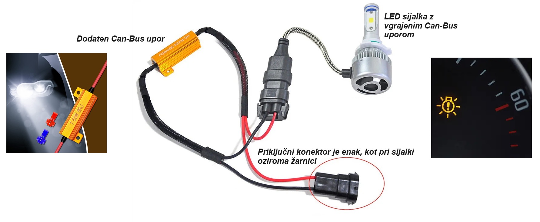 Manjša poraba energije: Ker LED sijalke porabijo manj električne energije, je manjša verjetnost, da bo zaradi preobremenitve izgorela električna napeljava ali pa da bo alternator prehitro odpovedal.
